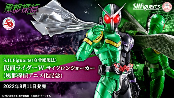 「S.H.Figuarts(#真骨彫製法) #仮面ライダーW #サイクロンジョーカー(風都探偵アニメ化記念)」は一般店頭にて8月11日(木)新発売!