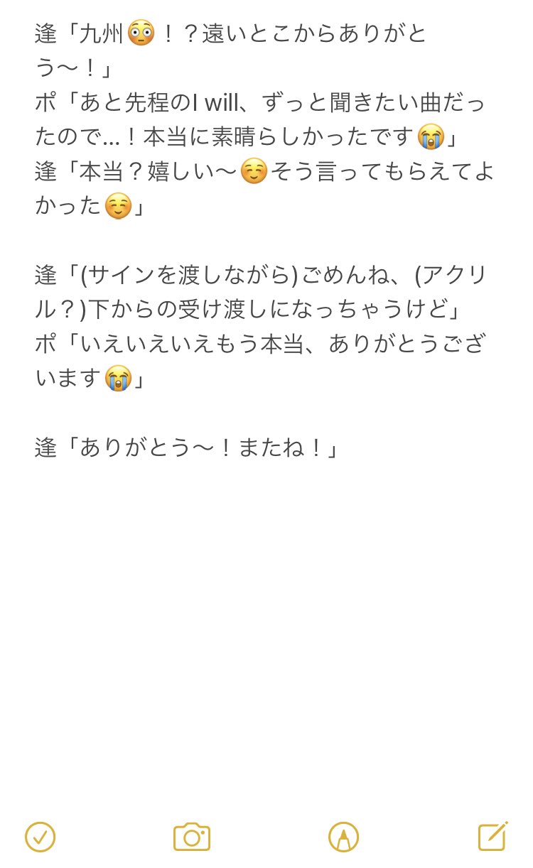 恐れ多くも昼の部ミーグリに当選し、逢田さんに直接お祝いの言葉を伝える事ができました。覚えてる限りをレポします…!