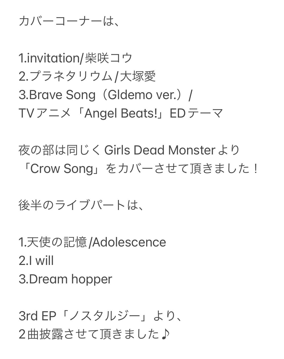 あとで改めてセトリもあげます! pic.twitter.com/H0kVO64yMc