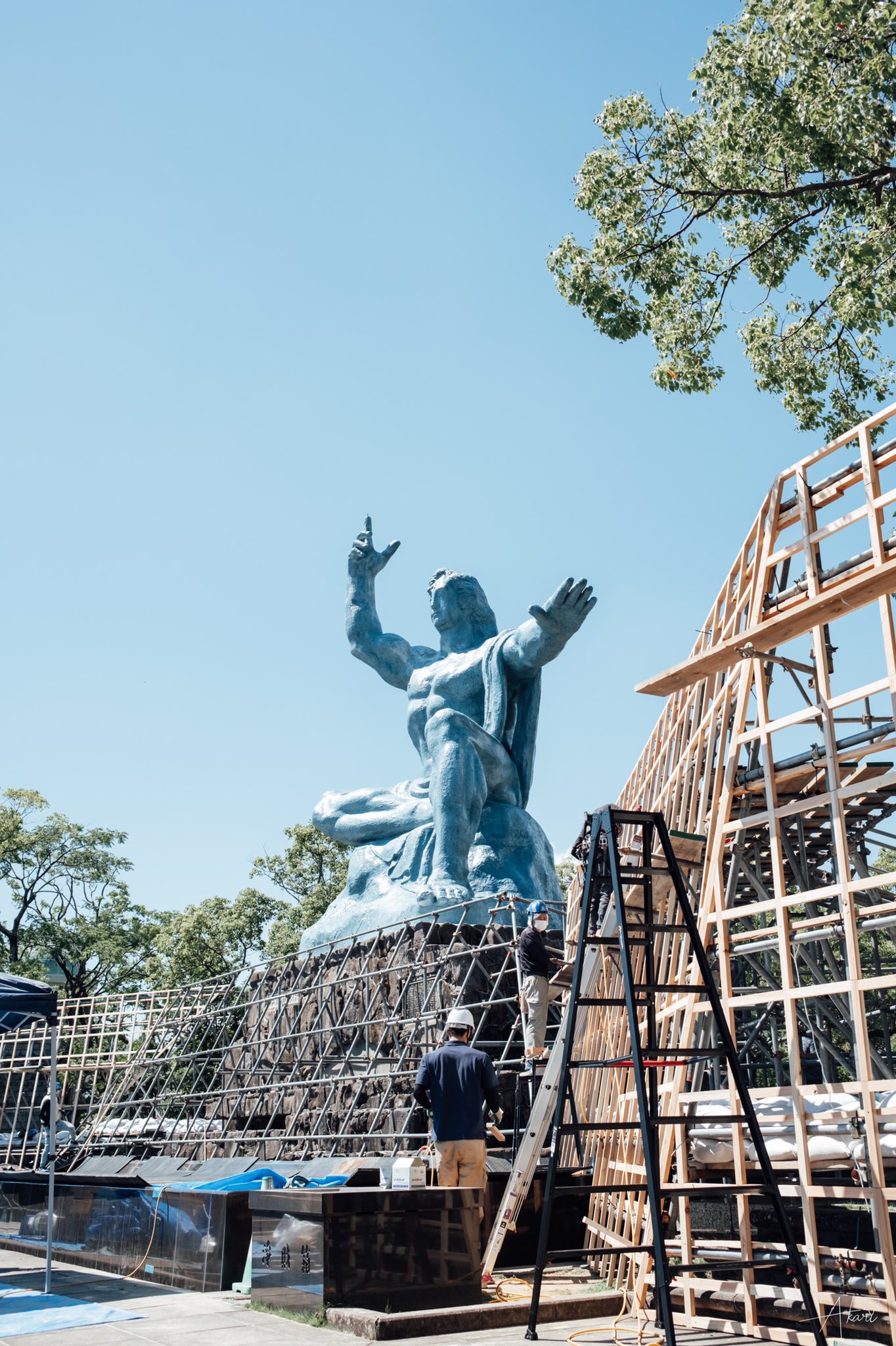 2022年8月9日。今朝の長崎平和公園です。穏やかな青空が広がり、式典の準備が進められています。77年前の今日、どんな1日が始まろうとしていたのでしょうか。 #長崎原爆の日 #現地レポ #YesICAN pic.twitter.com/xzs307J6Xm