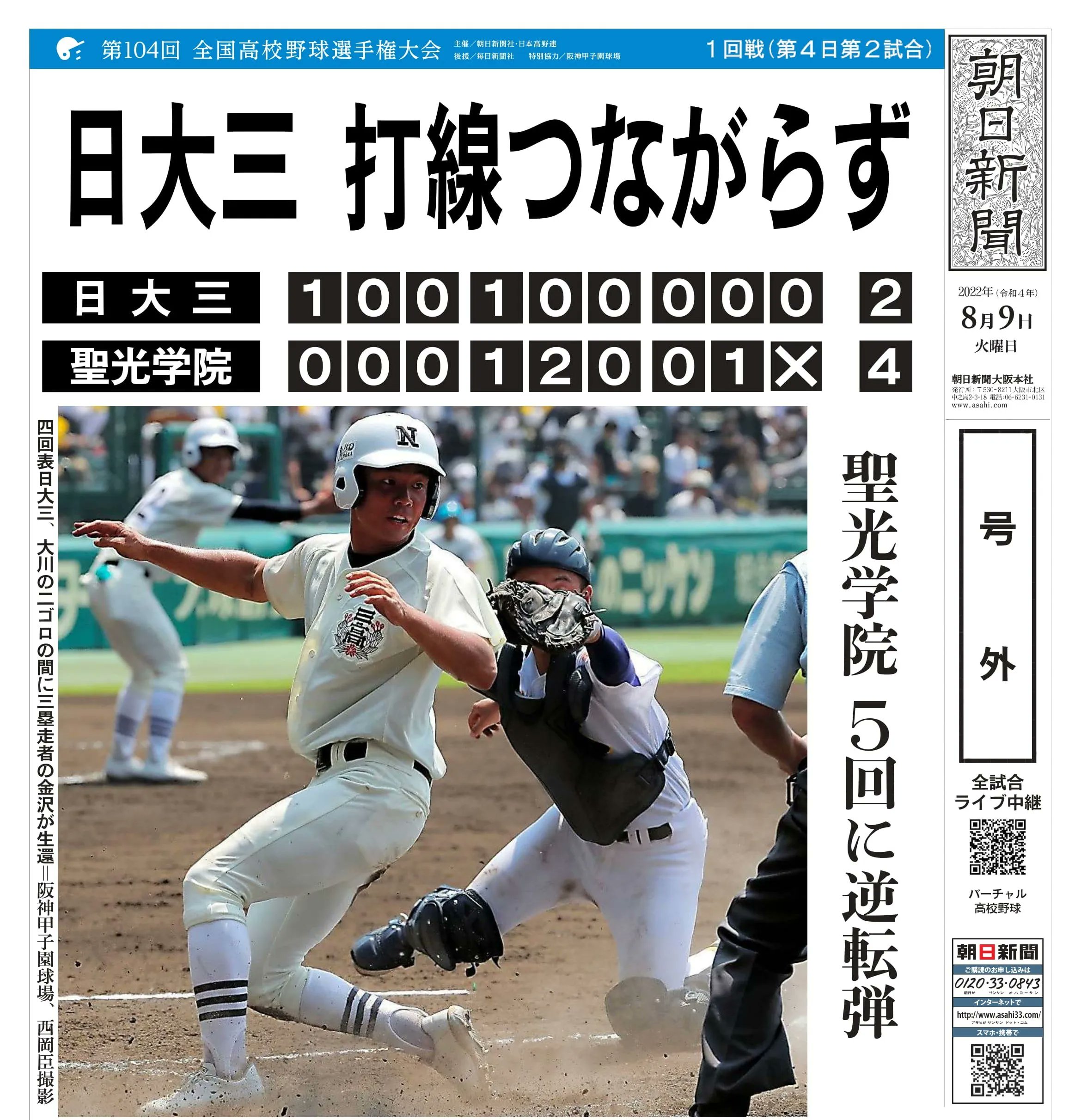 【電子号外】聖光 初戦突破 日大三(西東京)に4-2 ⚾