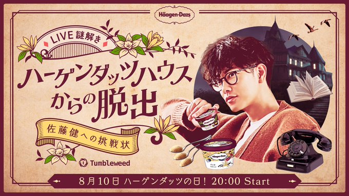 今年は #佐藤健 さんが生配信で謎解きに挑戦⚡️成功したら #ハーゲンダッツの日 を記念して8,100個を皆さんにプレゼント🎁