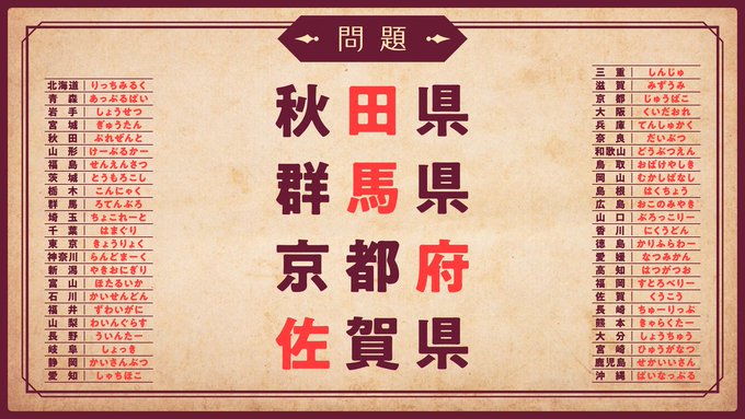 謎の正解画面と照らし合わせると都道府県のキーワードが導き出せるようです。