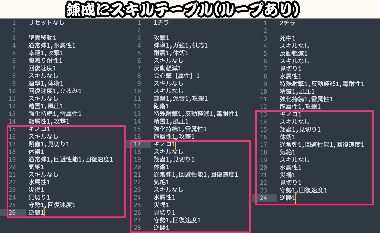 【錬成のスキルテーブル】