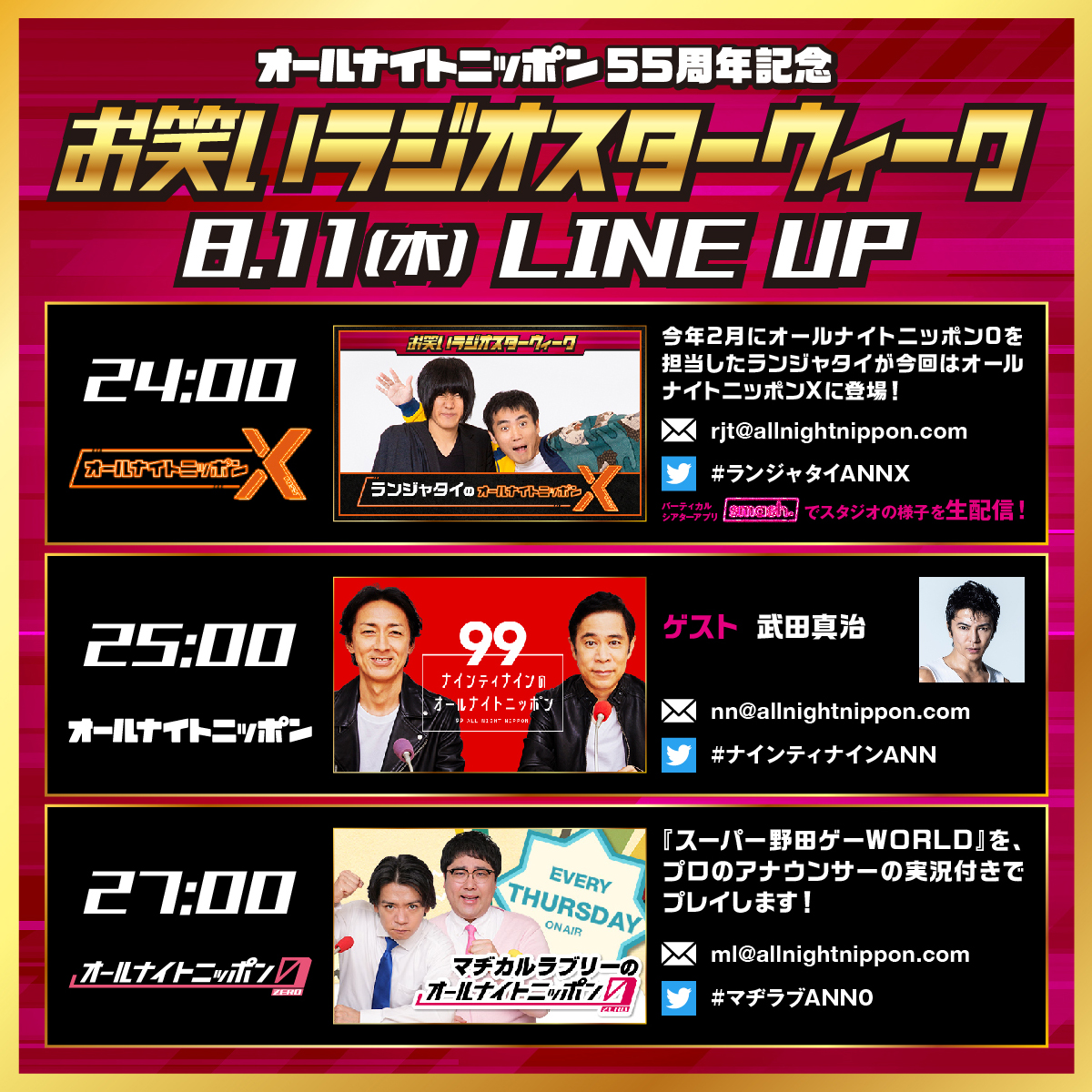 今夜24時からは #ランジャタイ のオールナイトニッポンX