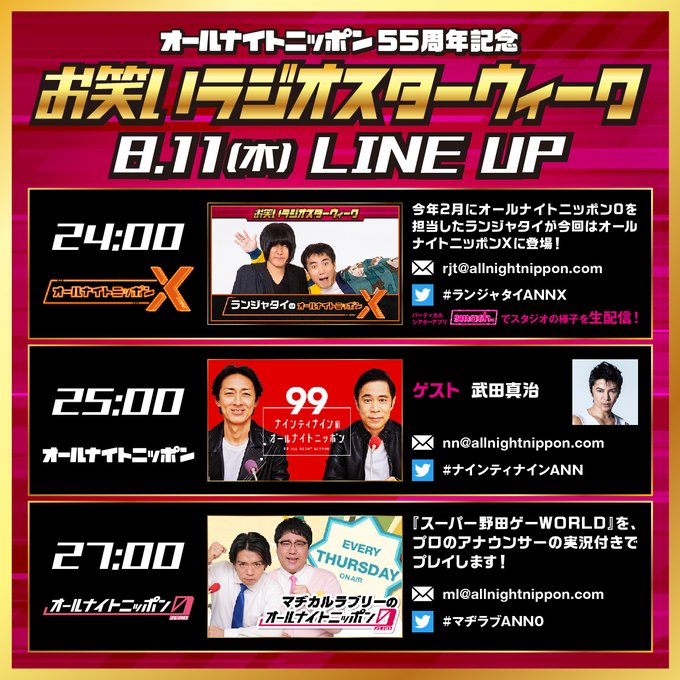 このあと24時からは #ランジャタイ のオールナイトニッポンX