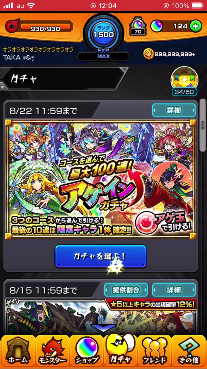 #モンスト #アゲインガチャ #100連