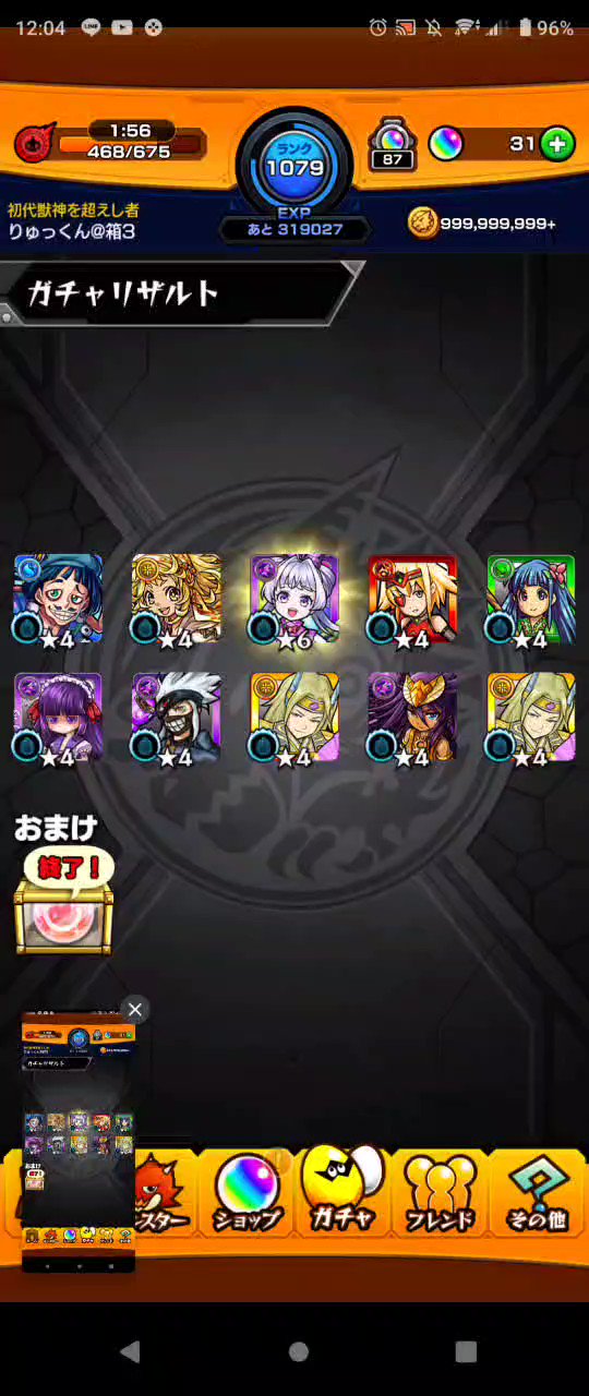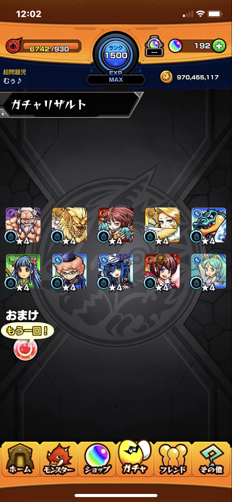 無料ガチャ50連で4体