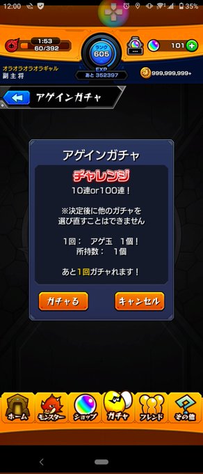 #アゲインガチャ の「チャレンジ」コースを引いたら「100連」したよ!