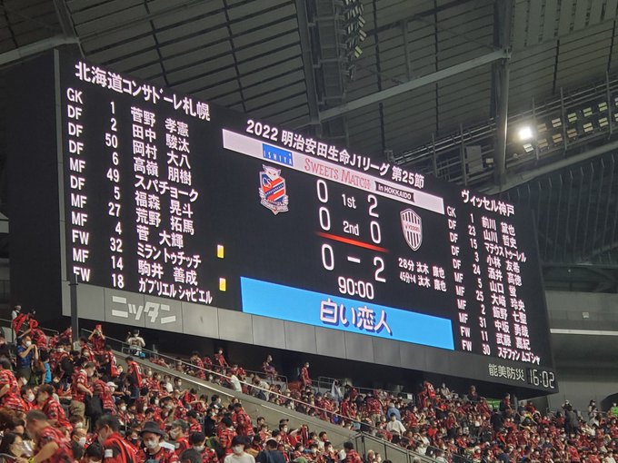 #北海道コンサドーレ札幌 0-2 #ヴィッセル神戸