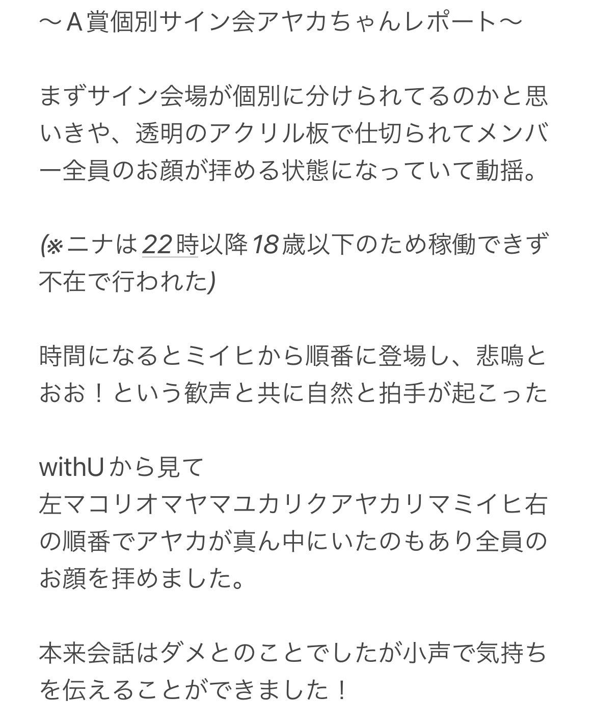 〜A賞個別サイン会アヤカちゃんレポ〜