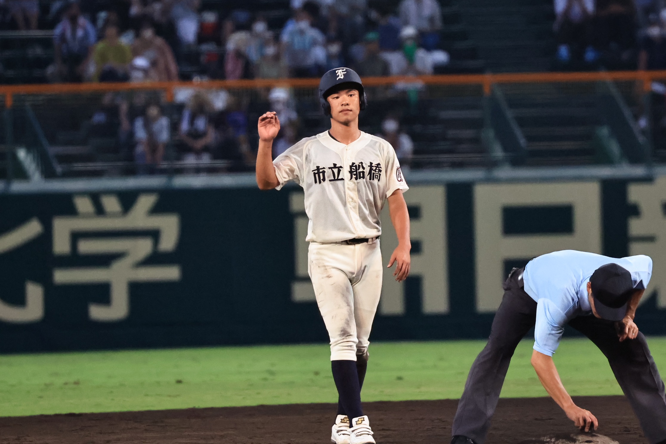 #市立船橋 9回裏、大きな手拍子、大歓声の中で、3番森本哲太(双子・兄)の2点2塁打で8-5と3点差に迫る!! pic.twitter.com/iuzTaEEjrz