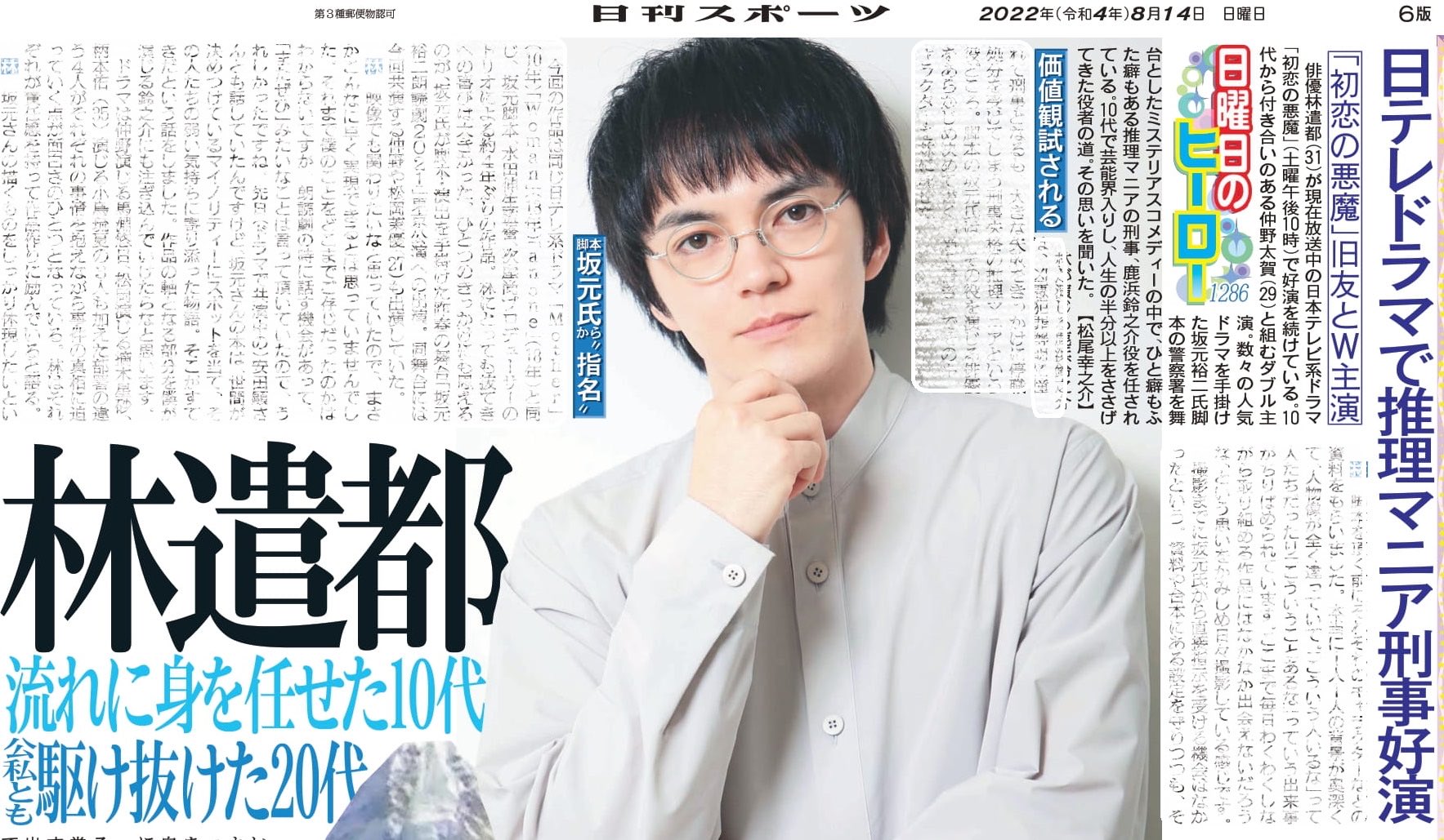 林遣都 日テレドラマで推理マニア刑事好演 地に足着けて頂目指す30代「ひたむきに」