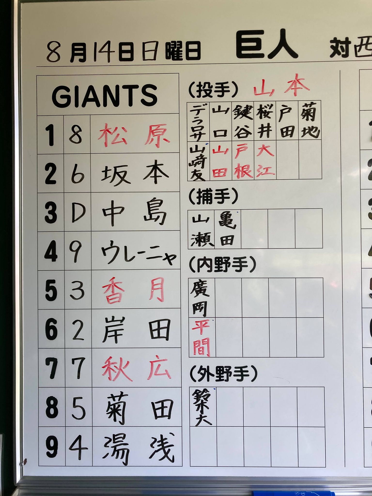 #坂本勇人 #キャプテン、#廣岡大志 選手出場予定‼