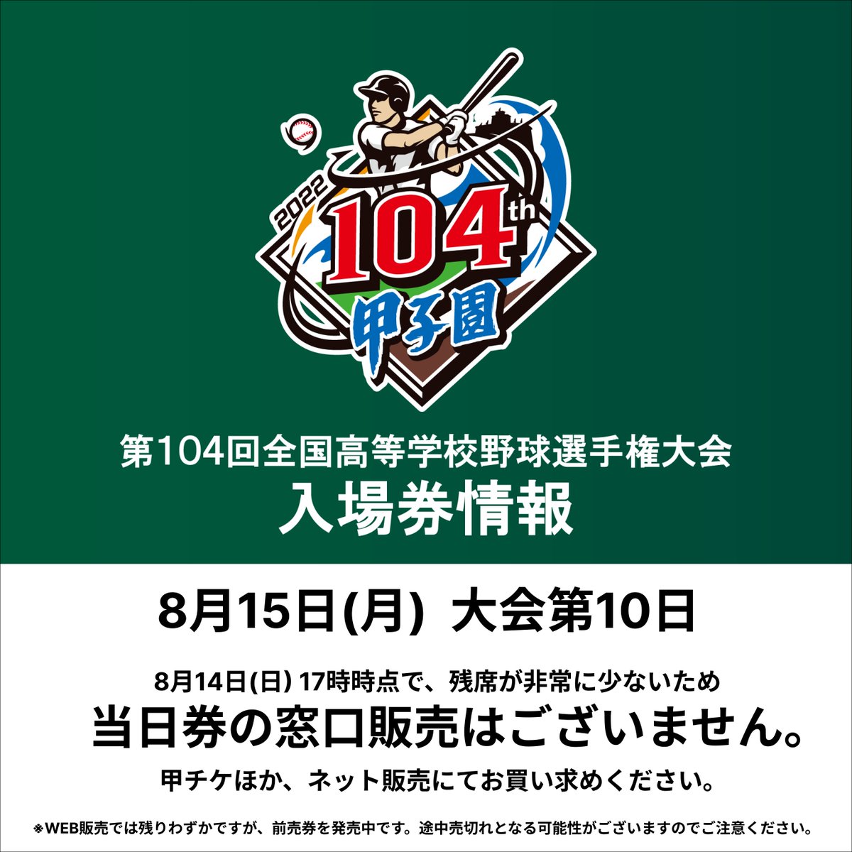 8月15日(月)は前売券の残席が非常に少ないため当日券の窓口販売は行いません。