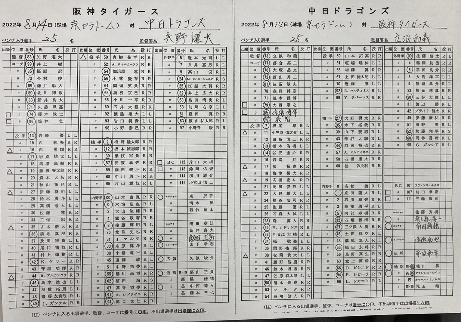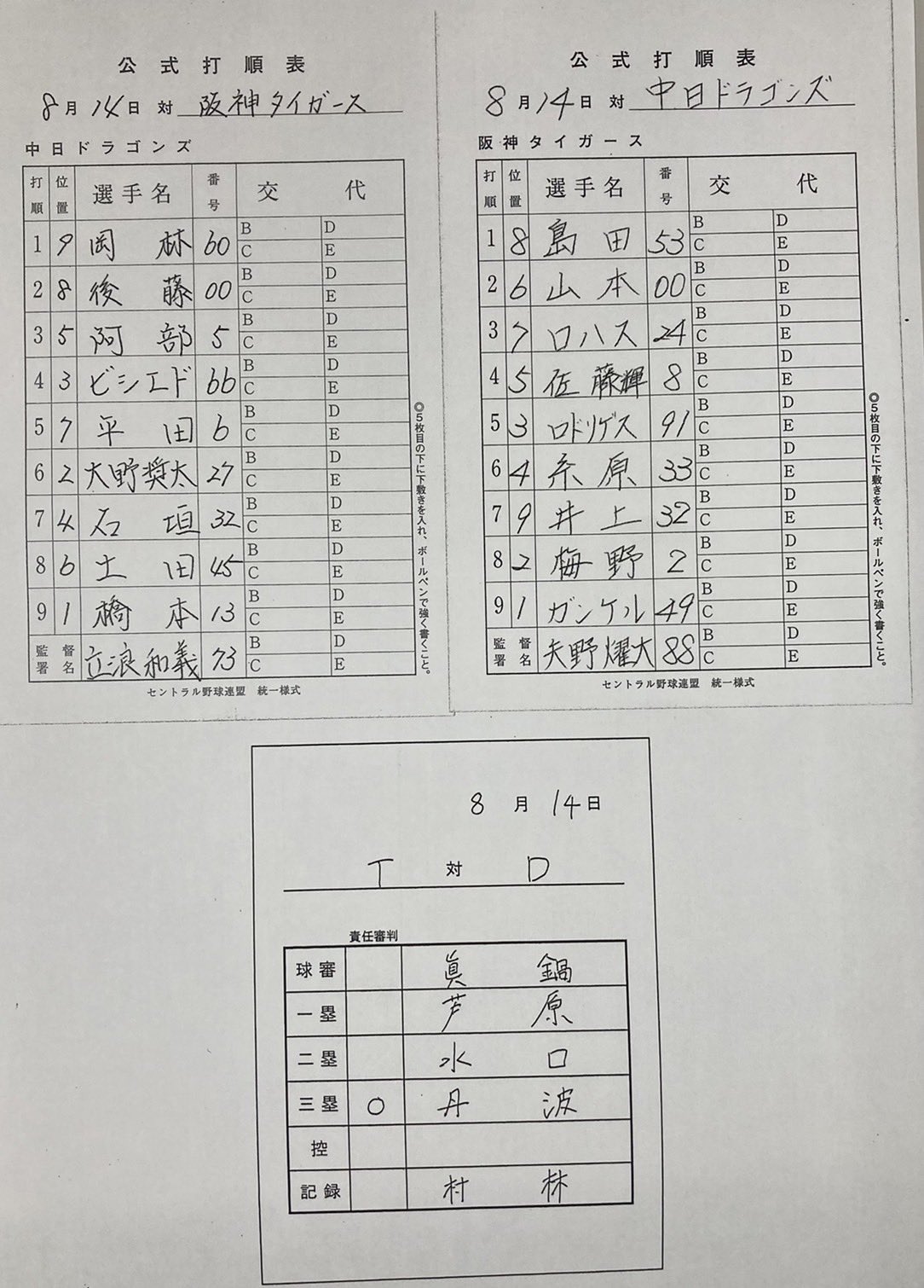 ⚾#プロ野球(2022/8/14)