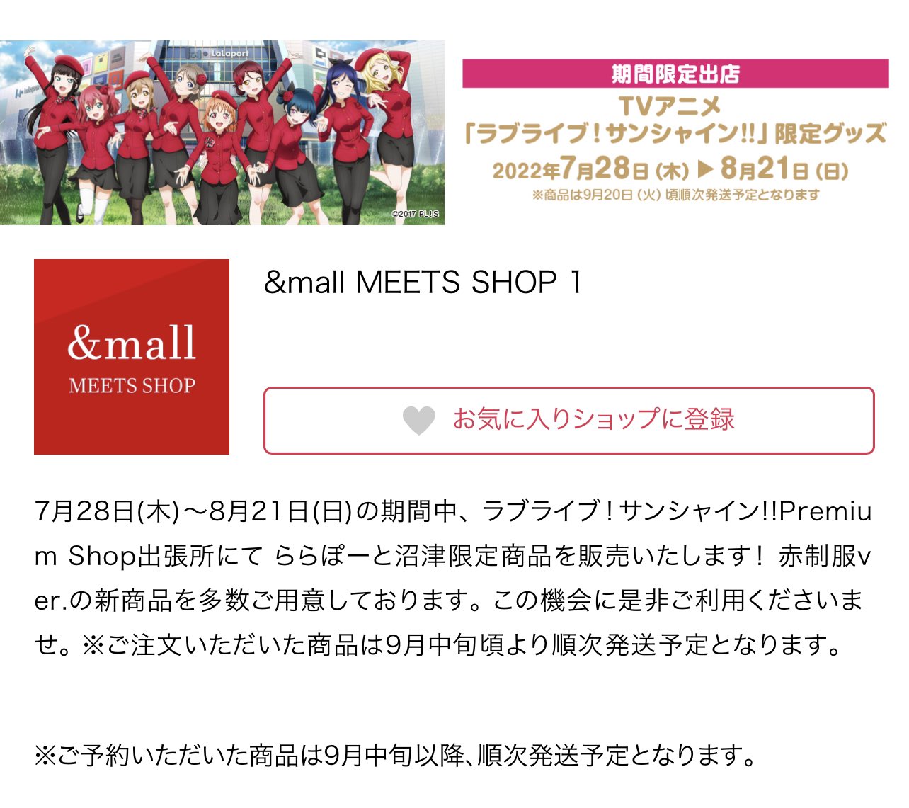 ららぽーと公式通販&mallでは引き続き予約販売を行っております!お買い逃しやご来店できなかったお客様は是非ご利用ください🌈