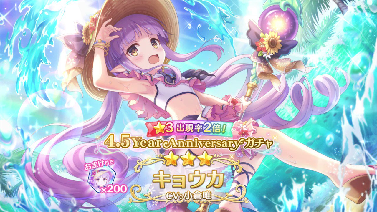 08/15(月) 15:00から、★3キャラ出現率2倍の「4.5Year Anniversaryガチャ」を開催中!
