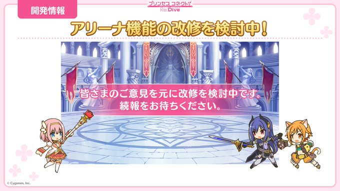 バトルアリーナとプリンセスアリーナについて、プレイヤーの皆さまのご意見を元に改修を検討中!