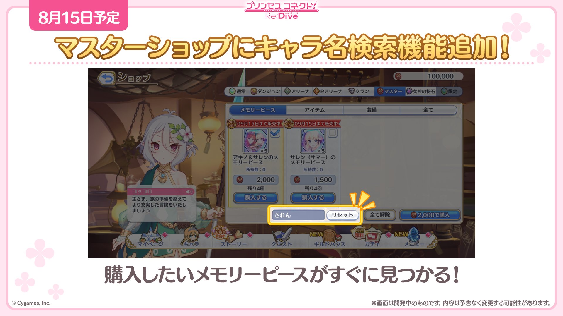 「マスターショップ」にキャラ名検索機能を追加予定です!