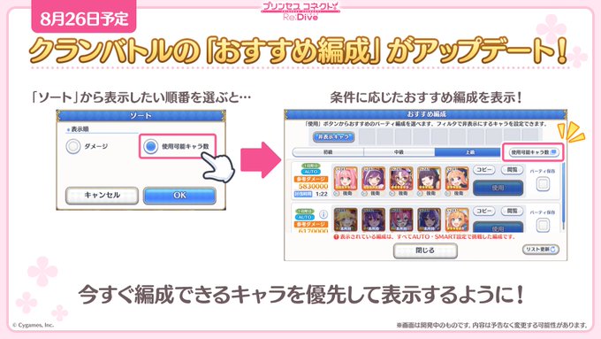 クランバトル「おすすめ編成」機能をアップデート予定です!