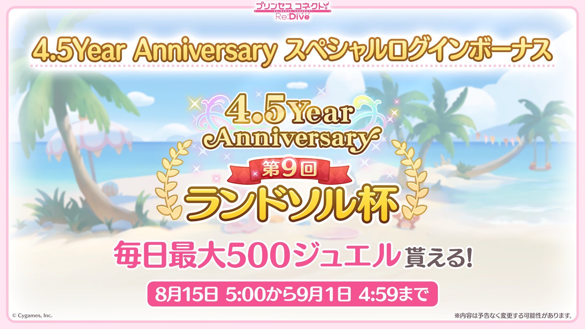 08/15(月)から「4.5Year Anniversary スペシャルログインボーナス 第9回ランドソル杯」を開催予定!