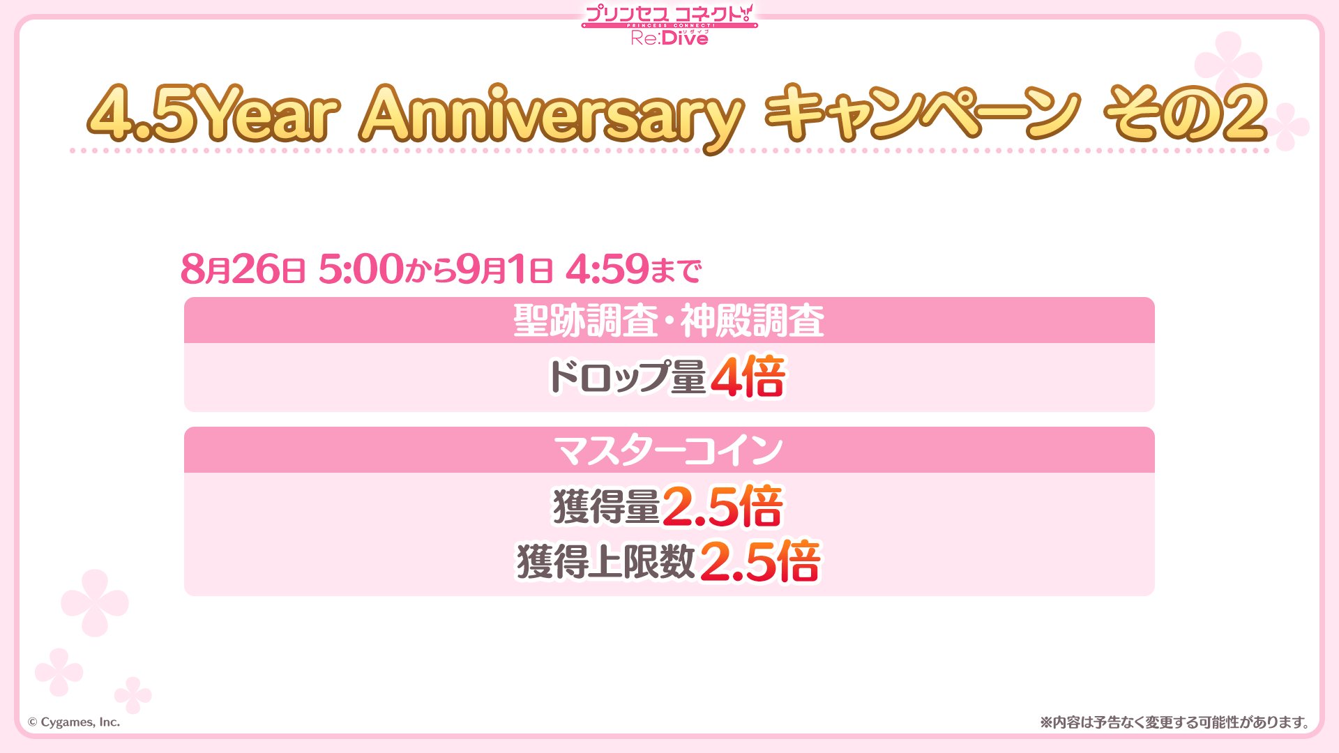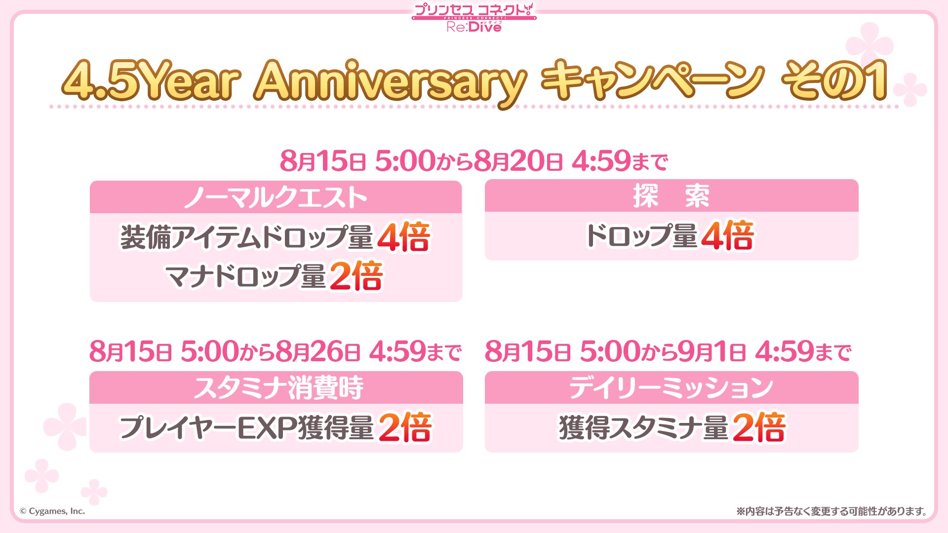 本日08/15(月) 05:00から「4.5Year Anniversaryキャンペーン」を開催!