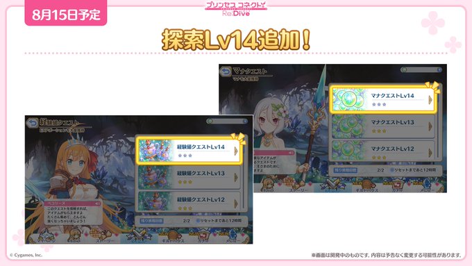 08/15(月)15:00から「探索」の各クエストにLv14が追加されます!