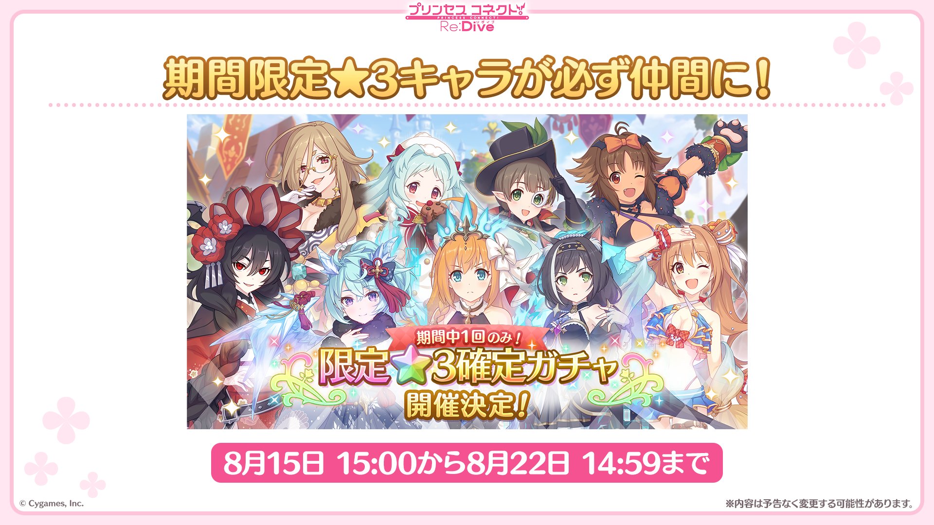 08/15(月)15:00から「★3確定プラチナガチャ」を開催予定!