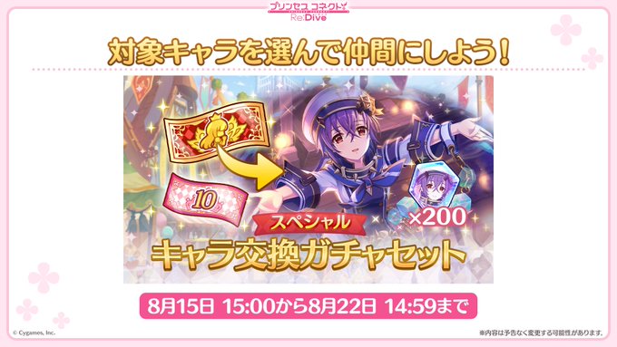 08/15(月)15:00から「スペシャルキャラ交換ガチャセット」が期間限定で販売予定!