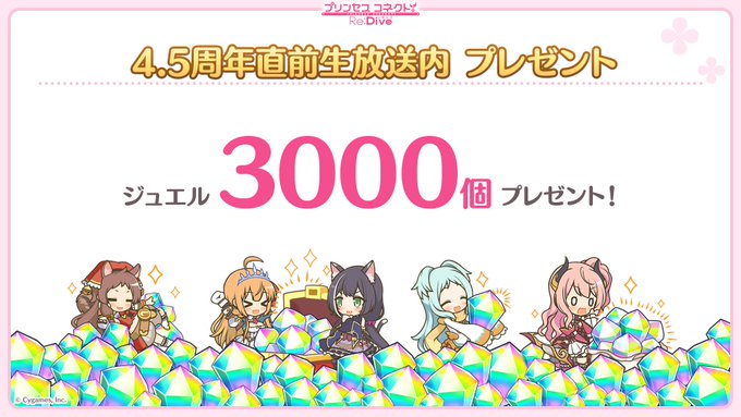 プレイヤーの皆さまにジュエル3000個を含む、4.5周年記念スペシャルプレゼントをお贈りしました!