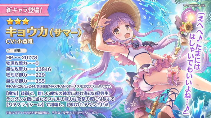 明日08/15(月)に、★3キョウカ(サマー)(CV:#小倉唯 さん)が登場!