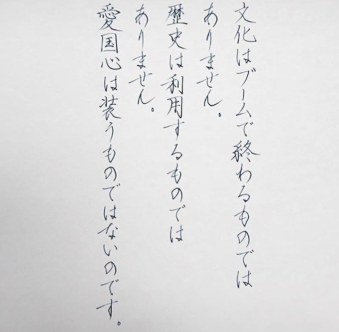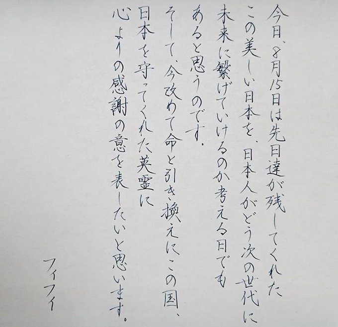 #終戦の日 に靖國神社でさせて頂いた私のスピーチの内容が、一部ではありますが綺麗な字で起こされていました。ありがとうございます。