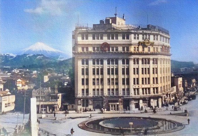 画像は営業再開した昭和26年頃の静岡店です。