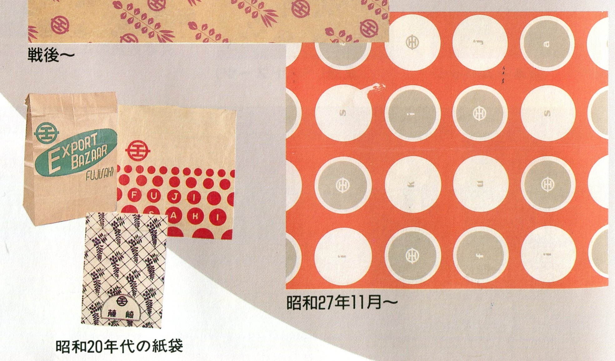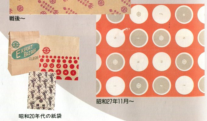 終戦後、増加した外国人へ向けて「エクスポートバザー」を開設、1952年にはデザインを一新した包装紙と共に新館開店を果たしました。