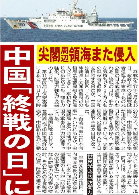 #終戦の日 #尖閣諸島 #領海侵犯