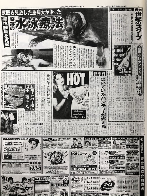 かつて東スポでは「空飛ぶ巨大イカが増殖中」との記事で、捕って食べて駆除することを勧めました。しかし、巨大イカはアンモニア臭が強く、刺身には不向きだったようです。 pic.twitter.com/PAs9zcrkcJ