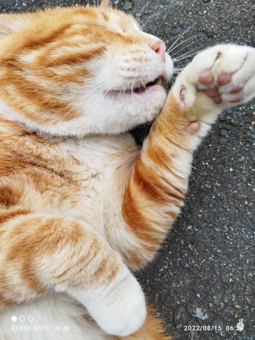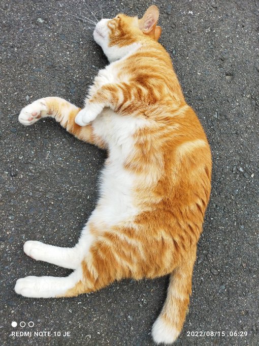 #猫写真 #猫がいる暮らし 🐾🐾おはようございます~🍀🍀8月15日月曜日曇りの朝です😊みかんくん、ご飯頂いたらゴロゴロしに玄関前…ぽんちゃんは何か見てる?今日も、良い1日をお過ごし下さいね!🍀🍀🐾 pic.twitter.com/aM0OR9zXsJ