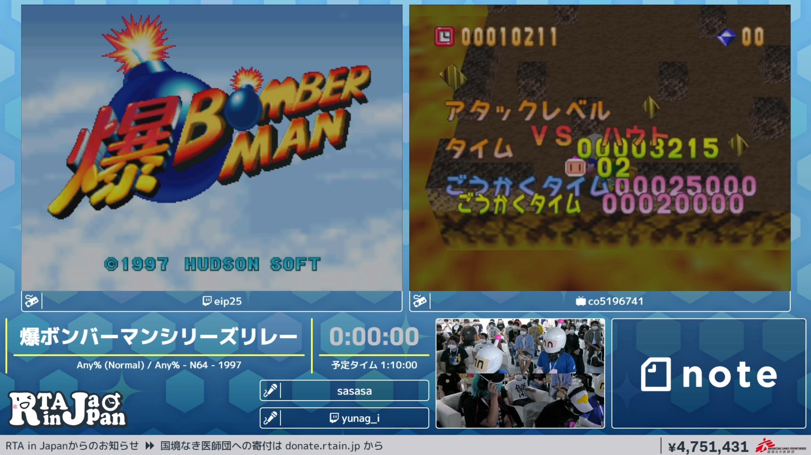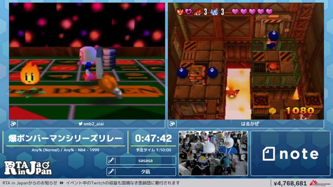 チームボンバーマン(ボンバーマンさん(@smb2_aiai)、ボンバーマンさん(@ko10bu)): 1:01:51