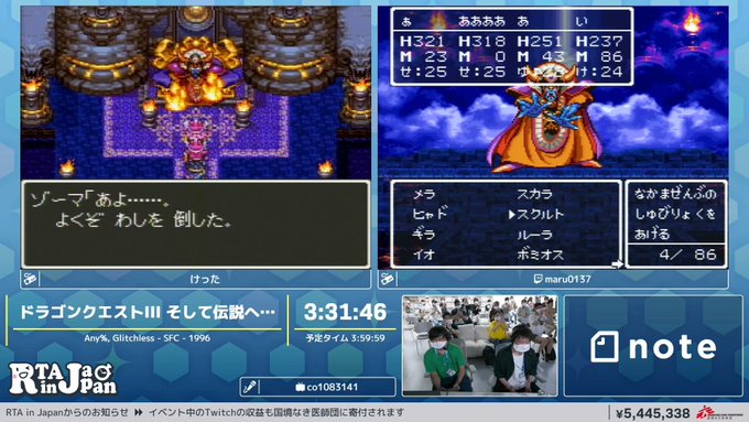 #RTAinJapan SFC版DQ3なんとか完走出来ました!ゾーマ強かったんだけど!!