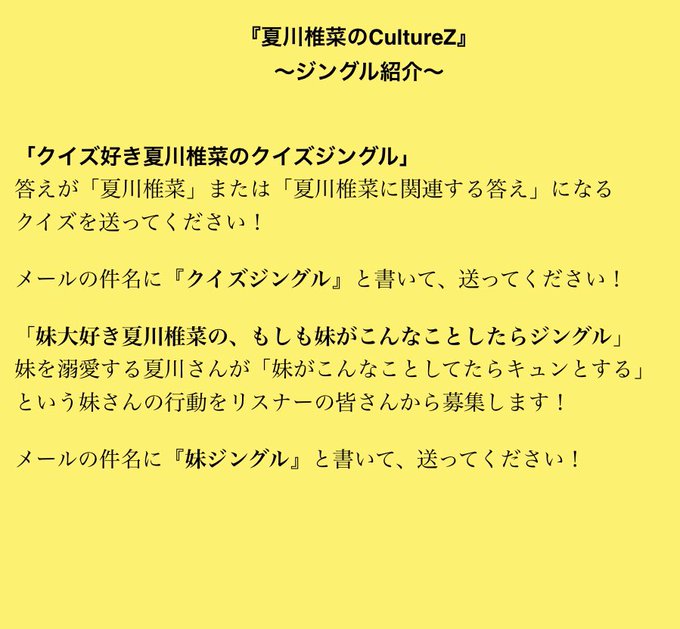 クイズ、妹ジングルも引き続き募集中!