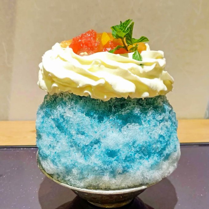 今日の珍しいかき氷は…【川越 これがかき氷】の\アマルフィ/柑橘類+ハーブのさっぱりとしたビターなかき氷🍧世界一美しい海岸といわれるアマルフィ海岸のようなマリンブルーが素敵🌊お口の中がさっぱりして美味でした💕