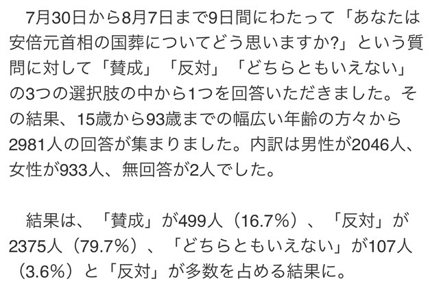 国葬反対約80%