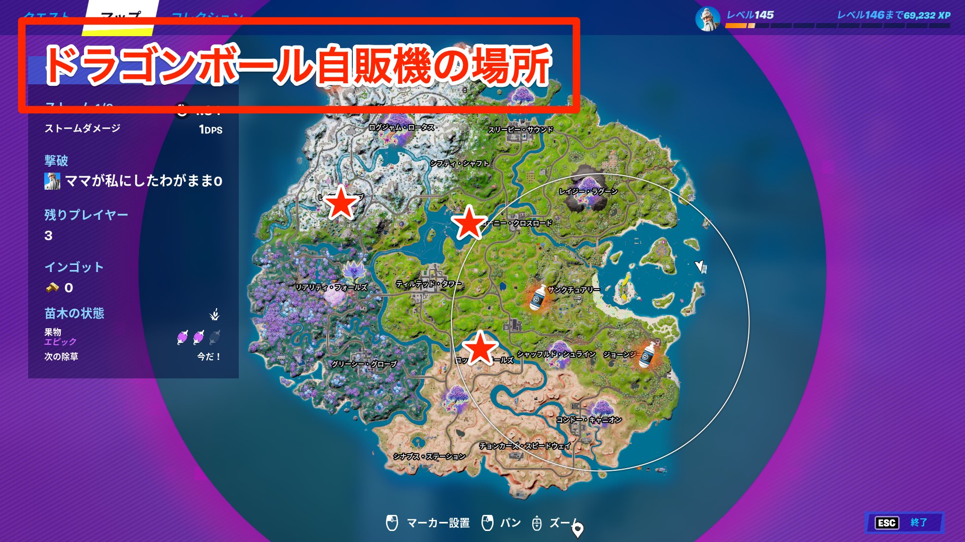 確定でのドラゴンボール自販機の出現場所は3箇所で、その他はランダム自販機が確率でドラゴンボール自販機になっているようです〜!😍😍😍