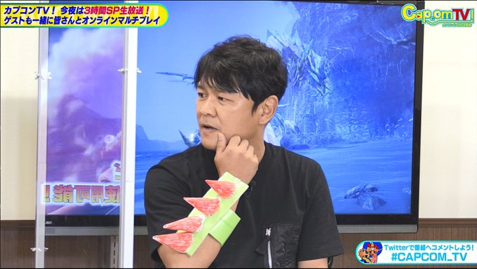 昨日のカプコンTV!『モンスターハンターライズ:サンブレイク』3時間SPはこちらからご覧いただけます。ゲストに久々の登場!辻本良三プロデューサーと視聴者さんでオンラインマルチプレイ!あれ?辻本Pの右腕に何かが! youtu.be/OkQcPpKgAfE?t=… #CAPCOM_TV #MHサンブレイク pic.twitter.com/LNIGw9QU73