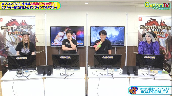 カプコンTV!『モンスターハンターライズ:サンブレイク』3時間SP!放送中!!出演陣、辻本プロデューサーと一緒にクエストに行きたい方募集中です! twitter.com/i/broadcasts/1… #CAPCOM_TV #MHサンブレイク
