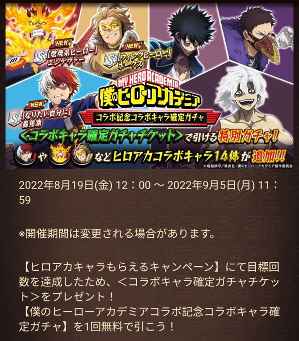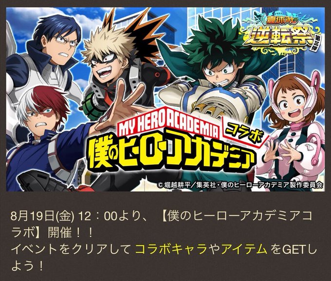 『僕のヒーローアカデミア』コラボのゲーム内お知らせを公開しました‼