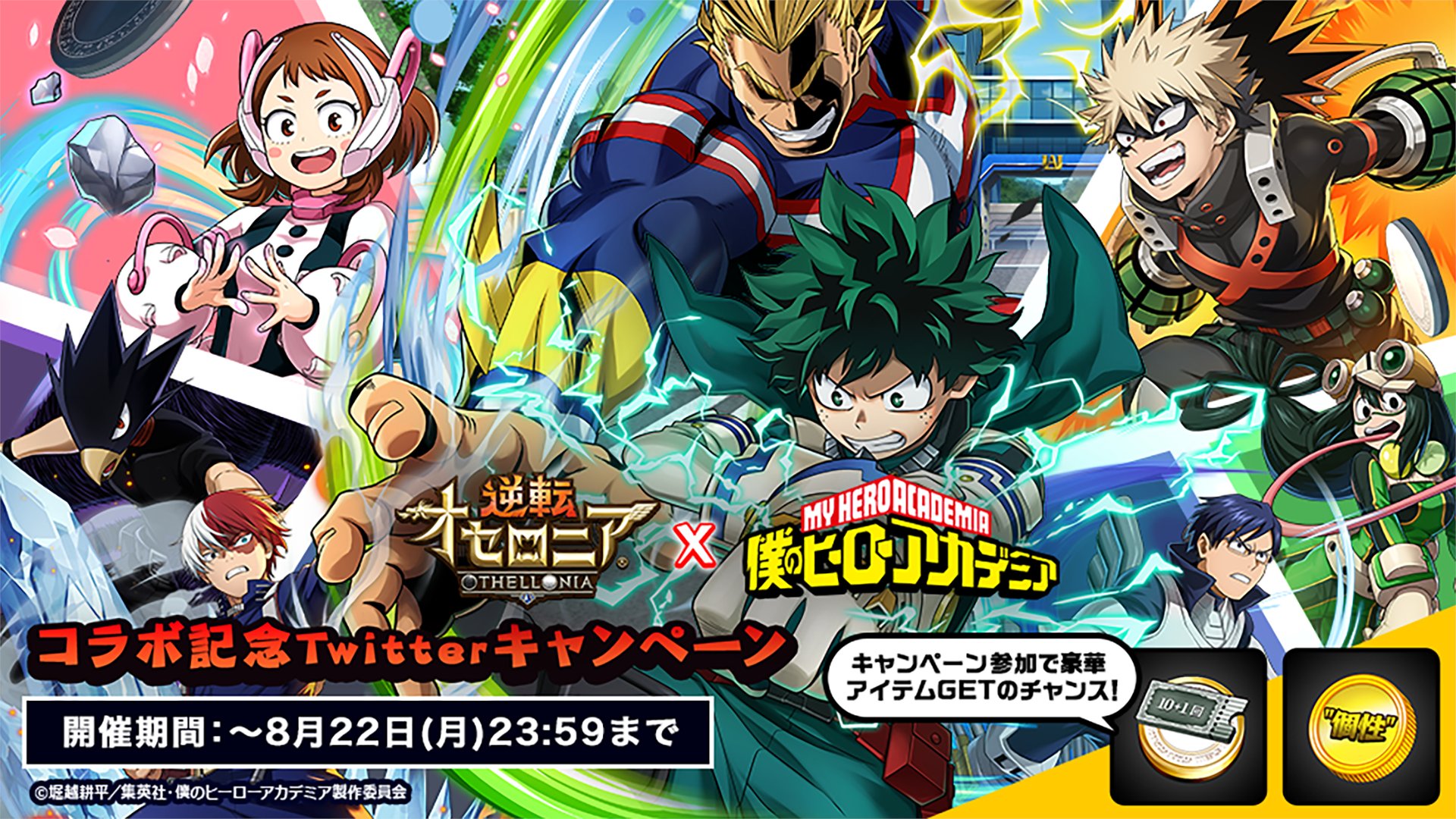 コラボ期間中に『逆転オセロニア』へログインするだけで、「[憧憬]緑谷出久&オールマイト」さんたちをゲットできます✨
