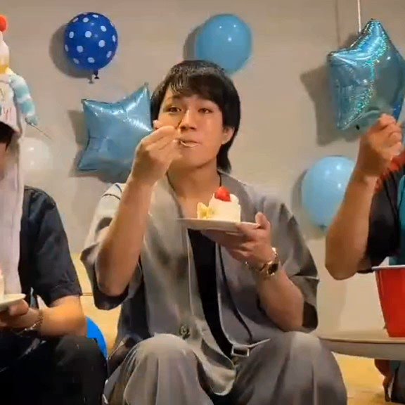 本日の神山くんバースデーケーキを率先して7等分に まずはお誕生日のりゅーせーたんにあげてそのあとメンバーに、最後に自分の分、そのあとお片付け これをオカンorママと言わずになんと呼ぶ