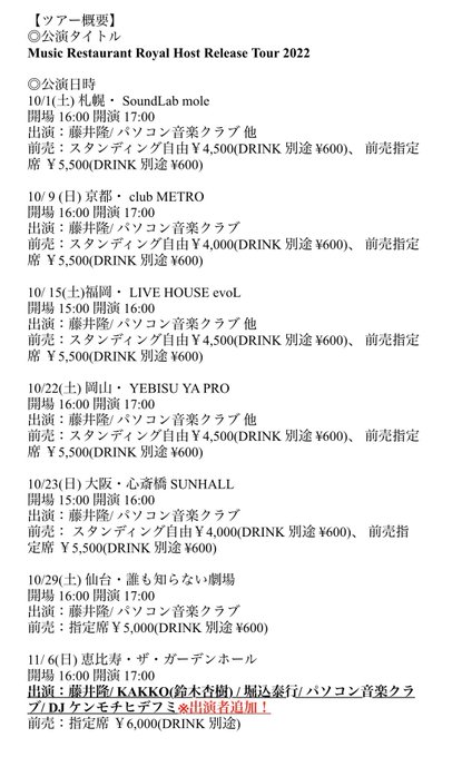 ツアーファイナルにあたります11/6恵比寿ザ・ガーデンホールにKAKKOさん(鈴木杏樹)、堀込泰行さん、ケンモチヒデフミさんにご出演いただけることになりました!